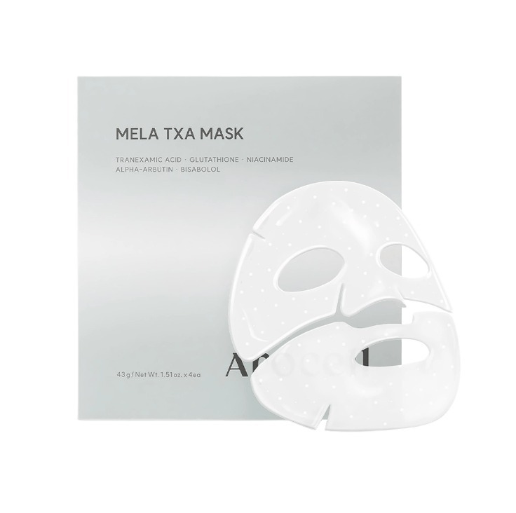 Гидрогелевая маска бренда Arocell Mela TXA Mask с транексамовой кислотой и глутатионом осветляет и выравнивает общий тон лица, придаёт эффект здорового внутреннего свечения. Маска предлагает комплексный подход к коррекции гиперпигментации: не только эффективно осветляет существующие пигментные пятна, но и предотвращает возникновение новых.