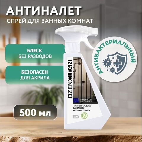 Спрей DzenClean для ванных комнат на основе минеральных и органических кислот легко, быстро и безопасно удалит известковый налет, ржавчину, мыльные разводы и органические загрязнения.