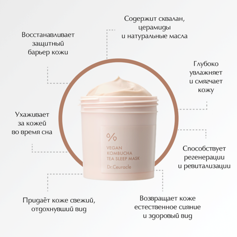 Питательная ночная маска с роскошной тающей текстурой ухаживает за кожей во время сна. Биомиметическая формула со скваланом, церамидами и натуральными маслами увлажняет и смягчает кожу, восстанавливает защитный барьер. Комбуча и бакучиол ревитализируют и улучшают регенерацию. Маска возвращает коже отдохнувший, свежий вид и природное сияние.