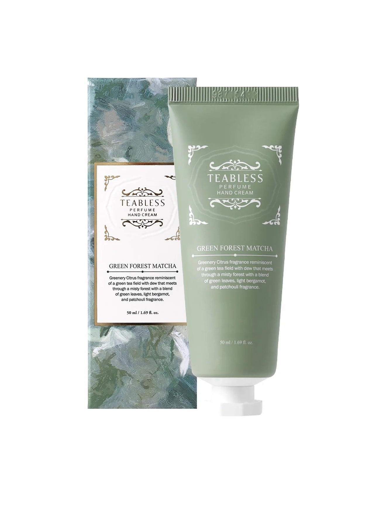 Парфюмированный крем для рук Teabless Green Forest Matcha Perfume Hand Cream интенсивно увлажняет и питает, устраняет шелушения и зуд, восстанавливает поврежденные участки и ускоряет процесс регенерации, «запечатывает» влагу внутри клеток, предупреждая обезвоженность, успокаивает раздражения, обеспечивает освежающее и тонизирующее действие.