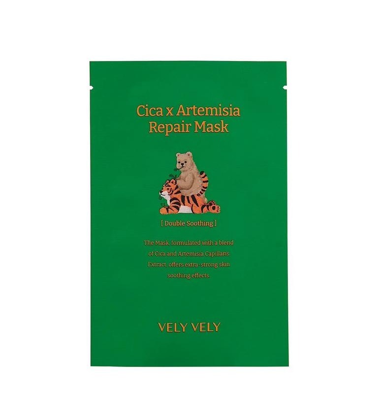 Vely Vely Cica X Artemisia Repair Mask, Восстанавливающая тканевая маска с экстрактом полыни и центеллы, 20 гр
